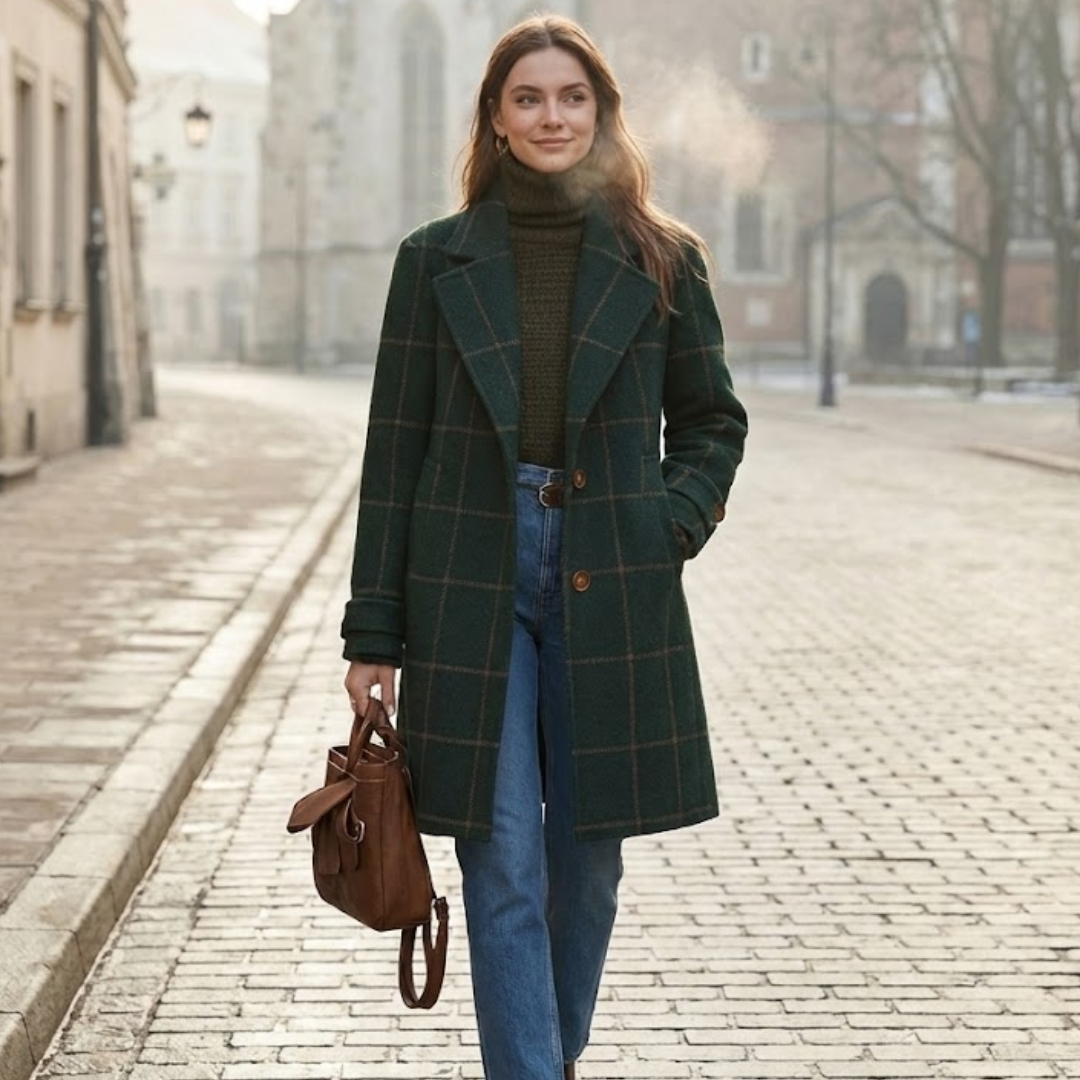 Katarzyna™ to płaszcz dla kobiet, które mają dość cienkich okryć „na niby”. Wykonany z wysokiej jakości wełny, daje prawdziwe ciepło, nie dodając objętości i zachowując klasycznie schludny wygląd.